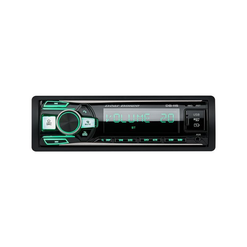 Deaf Bonce DB-115 je jednostavna i pouzdana auto multimedijalna jedinica bez DSP procesora, namenjena osnovnim audio sistemima. Model nudi stabilan rad, jasan zvuk i mogućnost Bluetooth povezivanja, uz potpuno lokalizovan interfejs i podršku za kontrolu putem aplikacije za iOS i Android.