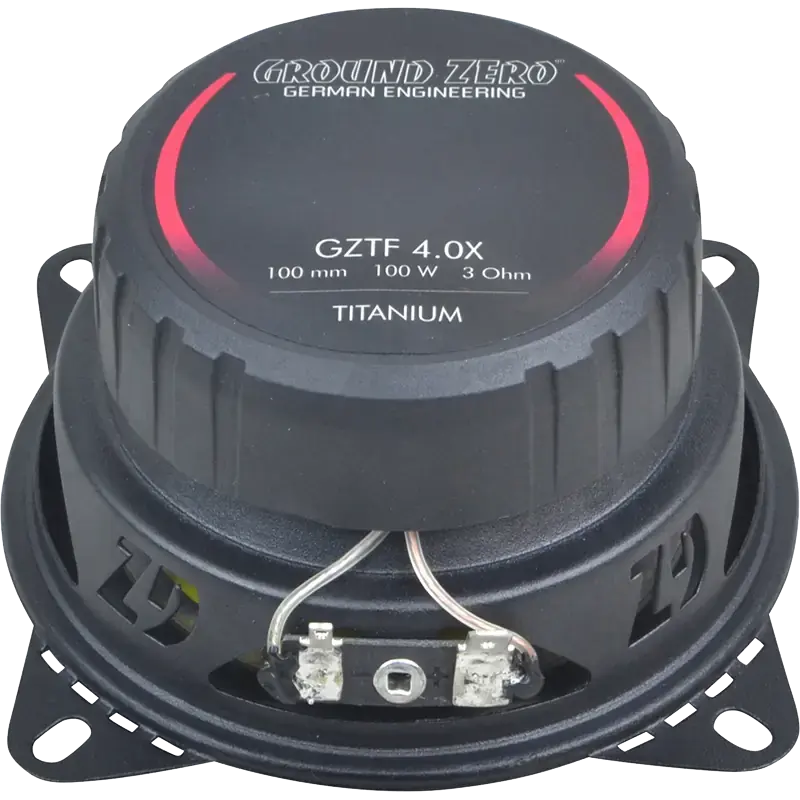 Dvosistemski (koaksijalni) auto zvučnici iz Ground Zero Titanium serije, prečnika 100 mm. Predstavljaju idealno rešenje za poboljšanje zvuka u vozilima sa fabrički predviđenim mestima za zvučnike manjeg prečnika, nudeći dobar odnos kvaliteta i cene. Lako se pokreću i sa standardnim auto-radiom, ali svoje pune performanse pokazuju u kombinaciji sa eksternim pojačalom.